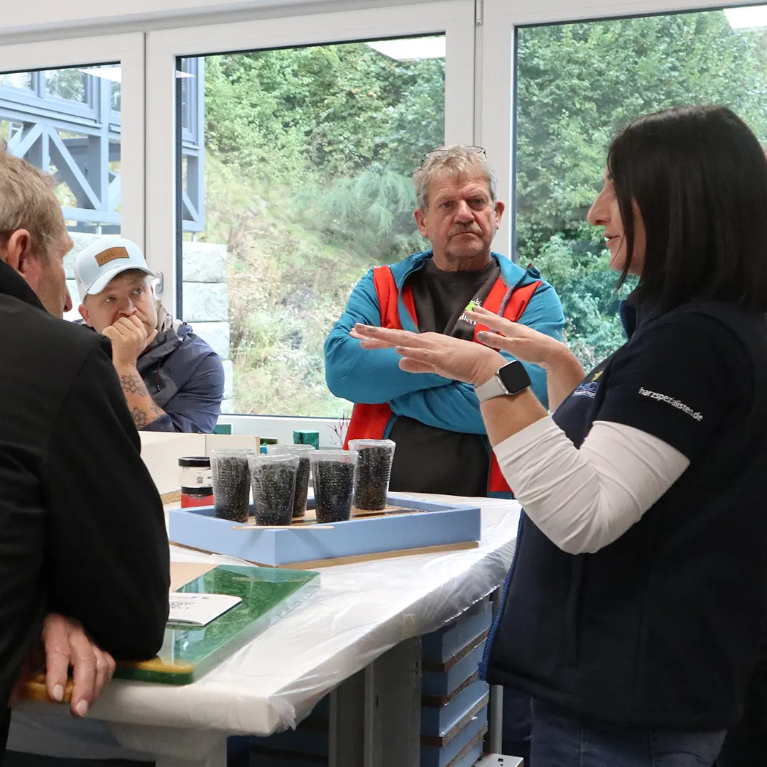 Unsere Mitarbeiter standen bereit, um Fragen zu beantworten und Tipps zur Verwendung der Produkte zu geben. Ob für Gießharze, Steinteppiche, Microzement oder Versiegelungen für Holz, Fußböden und kreative Bastelprojekte – unser Team erläuterte alle nötigen Informationen und informierte alle Interessierten über die Bandbreite an Anwendungsmöglichkeiten.