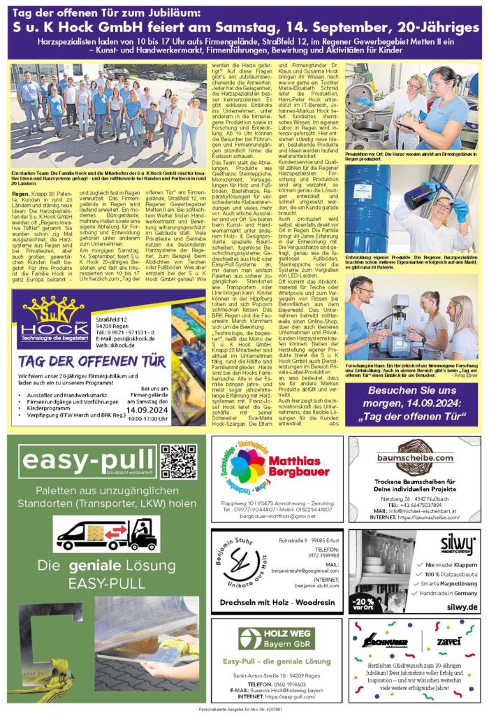 Regen. Knapp 30 Patente, Kunden in rund 20 Ländern und ständig neue Ideen: Die Harzspezialisten der S u. K Hock GmbH werden oft „Regens kreative Tüftler“ genannt. Sie wurden schon zig Mal ausgezeichnet, die Harzsysteme aus Regen sind bei Privatleuten, aber auch großen, gewerblichen Kunden heiß begehrt. Für ihre Produkte ist die Familie Hock in ganz Europa bekannt – und zugleich fest in Regen verwurzelt. Das Firmengelände in Regen wird laufend erweitert. Ein modernes Bürogebäude, mehrere Hallen sowie eine eigene Abteilung für Forschung und Entwicklung gehören unter anderem zum Unternehmen.