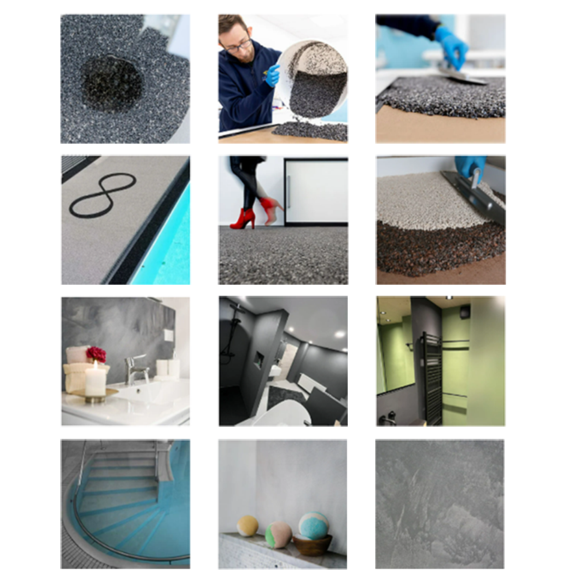 Auch für den Fußbodenbereich haben wir mittlerweile einige Auswahlmöglichkeiten. Mit unseren Steinteppich-Sets können Sie einen fugenlosen Steinteppich selbst verlegen. Dieser ist pflegeleicht, langlebig und kann auch neben Salzwasser oder Chlorwasser Pools verlegt werden.