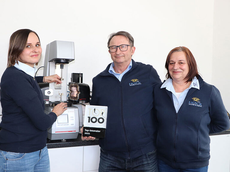 aus Vater, Bruder, Schwester und Chemielaboranten. Einer hat den Hut auf, und alle prüfen gemeinsam Entwicklung, Realisierung und Vermarktung. Forschung und Entwicklung hat bei Hock Struktur und Herz.